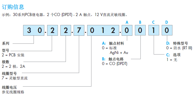 | 标准触点材料 | AgNi + Au |
