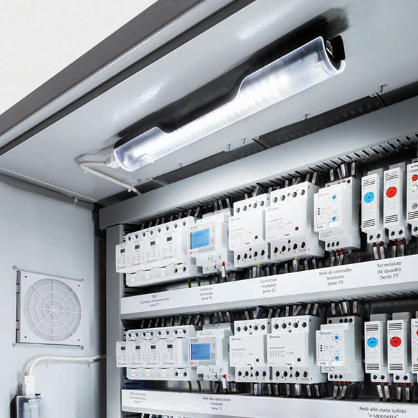 狗子28 说到电源板/电气柜的照明,选择LED最合适的特性是热因素。事实上,在LED照明系统中,产生的能量转化为热量的部分被最小化,以免影响配电盘的内部温度,从而影响安装设备的一般运行。这一重要功能允许灯永久安装在电气柜中,这有两个主要优点:维护干预很少。