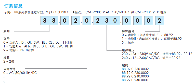 • 2个定时触点 或 1个瞬时+ 1个定时